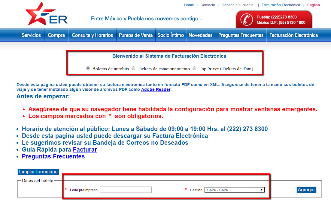 La facturación Estrella Roja se realiza de manera fácil en la misma página de compra de boletos online, donde esta línea de autobuses de pasajeros ofrece los servicios de sus líneas de primera clase, ejecutivos de lujo y de servicio ordinario, con destinos y puntos de origen en varios puntos de las ciudades de Puebla y México.